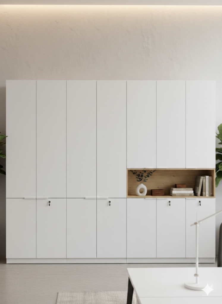 ארון למשרד 4 דלתות פתיחה עם פתח אחסון באמצע